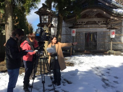 2月4日は福井テレビ「ほっとふくい」をご覧下さい 福井県の広報番組・福井テレビ「ほっとふくい」のスタッフの皆さんが当神社を取材されました。 県が制定した観光ルート「福井しあわせ巡遊コース」のスポットのひとつに当神社が選ばれていることから、取り上げていただいたものです。 放送は2月4日(土)午後5時から。福井県と福井テレビが放送されている隣県の皆様、ぜひご覧になってください。